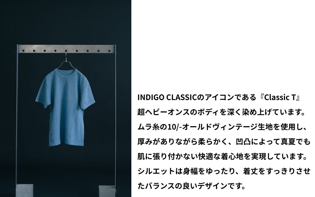 Classic T-shirt Light Indigo【サイズ選択可】 Indigo Classic 天然藍染 国産藍染め 奈良の藍 手染め 天然藍 工芸品 インディゴ Tシャツ ユニセックス 職人 日本製 奈良 奈良県 奈良市 なら