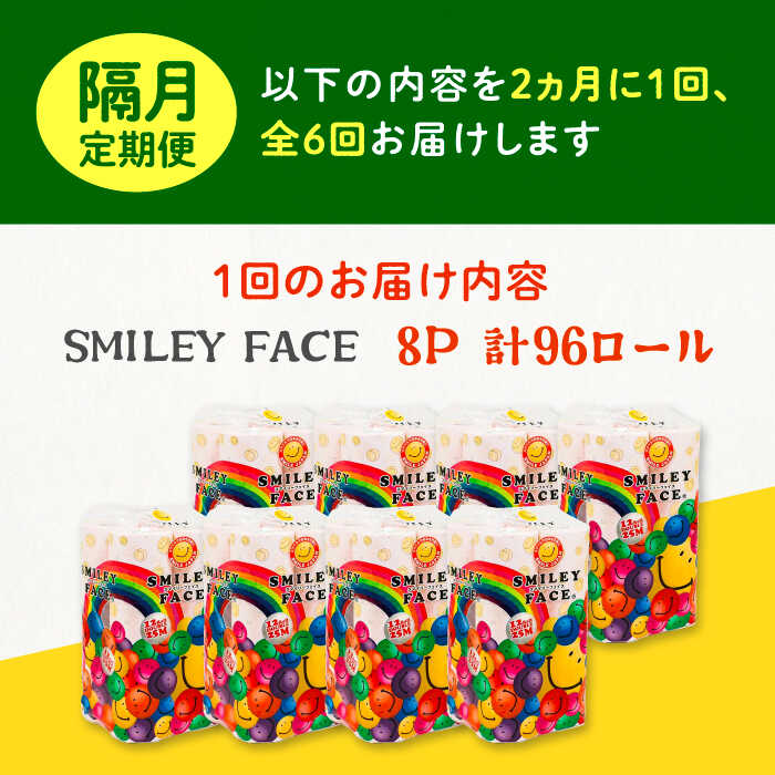 【ふるさと納税】【隔月配送 全6回定期便】トイレットペーパー ダブル 25m 12ロール×8パック スマイリーフェイス 《豊前市》【大分製紙】備蓄 防災 まとめ買い 日用品 消耗品 常備品 生活用品 大容量 トイレ[VAA079] 90000 90000円