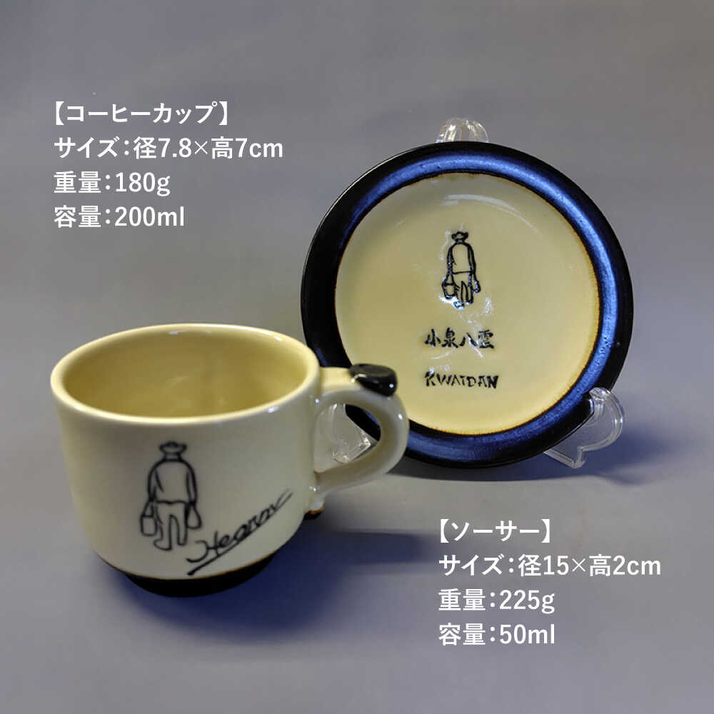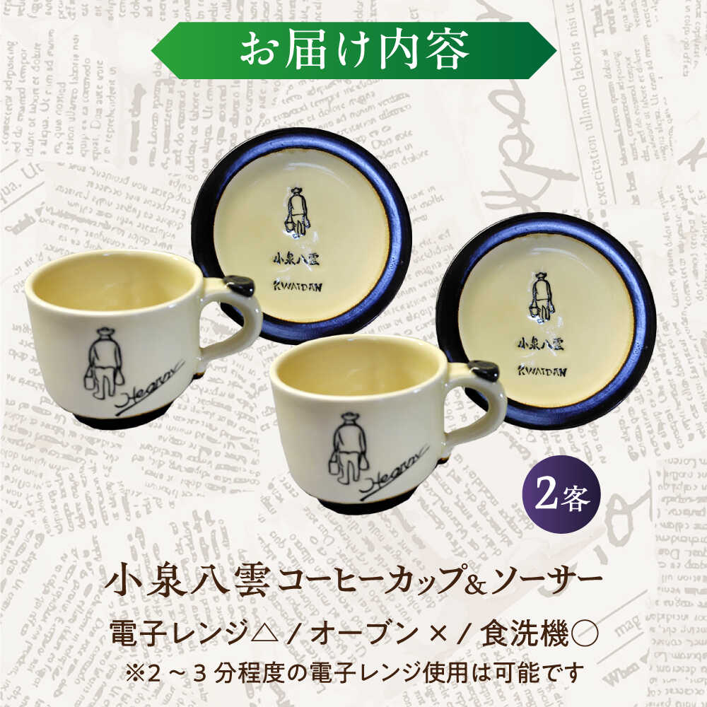 - 【ふるさと納税】【怪談120周年】食器 小泉八雲コーヒーカップ&ソーサー付き 2客セット 島根県松江市/出雲本宮焼高橋幸治窯[ALHA004]| 怪談 小泉八雲 ラフカディオハーン 陶器 焼き物 職人 工芸 お土産 コラボ カップ 食器 皿器 手作り ペアセット プレゼント