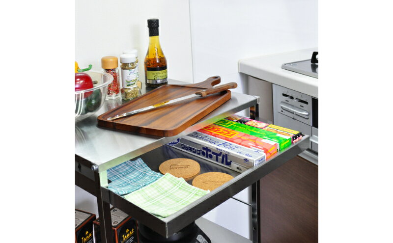 【ふるさと納税】ステンレス作業台ワゴン引き出し付 幅50 雑貨 キッチン雑貨 キッチングッズ 調理台 キッチンワゴン キャスター付 調理スペース