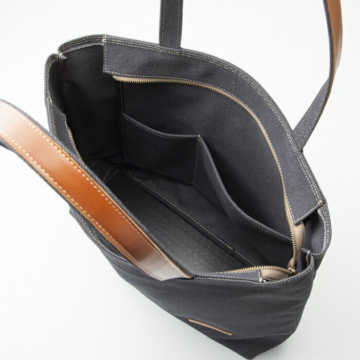 - 【ふるさと納税】【J-250】kii工房 帆布かばん ダブルハンドトート LLサイズ 先染め黒【高島屋選定品】
