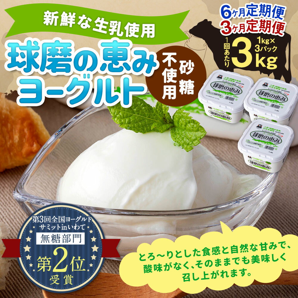 - 【ふるさと納税】【選べる定期便】球磨の恵みヨーグルト(砂糖不使用)合計 約3kg 約1kg×3パック 乳製品 生乳 無糖 プレーン 朝食 スイーツ おやつ 熊本県産 九州産 国産 冷蔵 送料無料