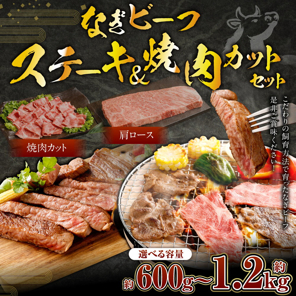 【ふるさと納税】なぎビーフ ステーキ & 焼肉カット 2種 セット〈選べる〉合計 600g / 900g / 1.2kg ステーキ 焼肉 カット 各300g~600g 牛肉 お肉 4等級以上 冷凍 岡山県産 国産 岡山県 美咲町 送料無料