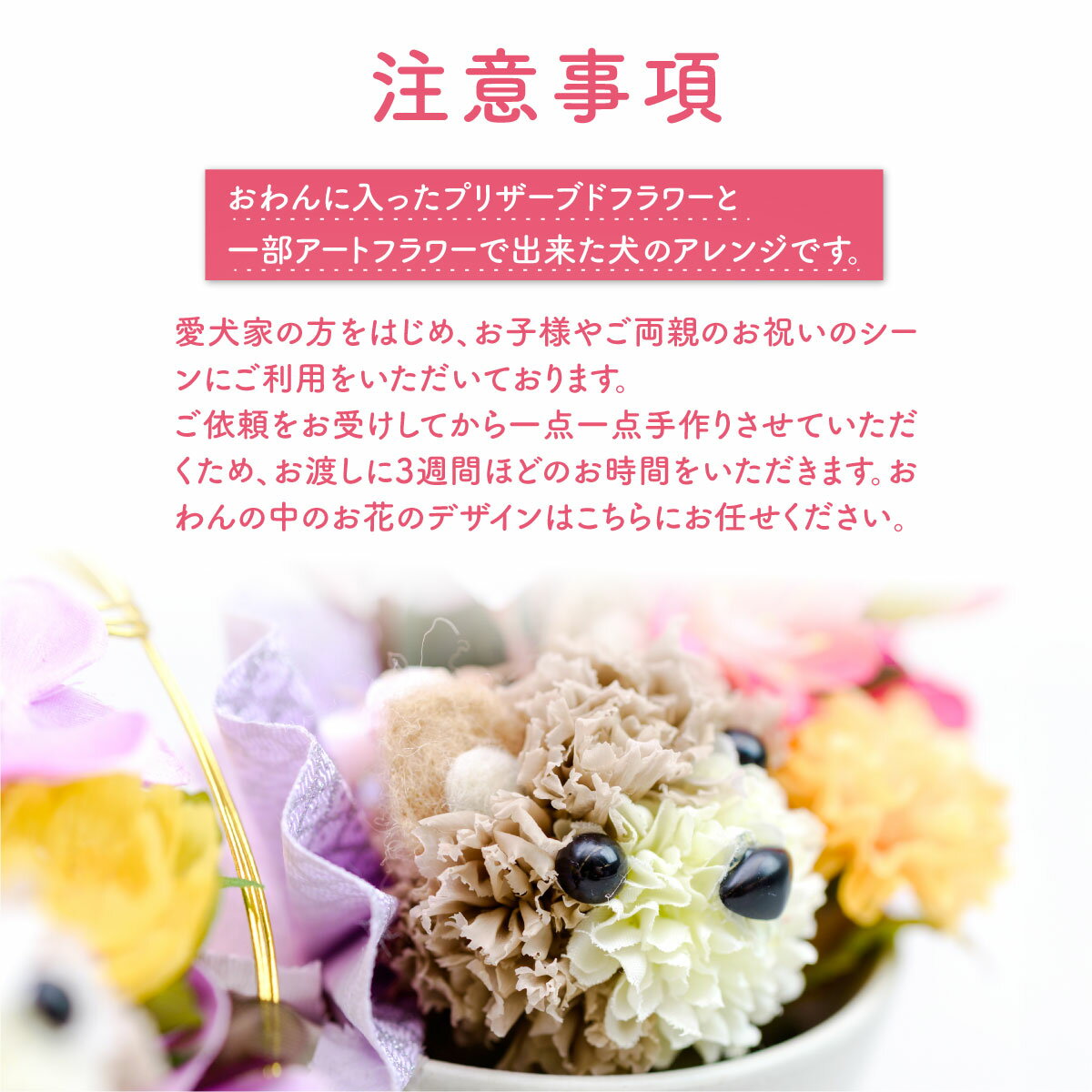 【ふるさと納税】ブリザーブドフラワーの犬のアレンジ・おわんこM 【プリザーブドフラワー アートフラワー 愛犬家 愛犬 犬 ハンドメイド 手作り お祝い プレゼント 贈答 誕生日 受注生産 フラワー 】 KWNAN001
