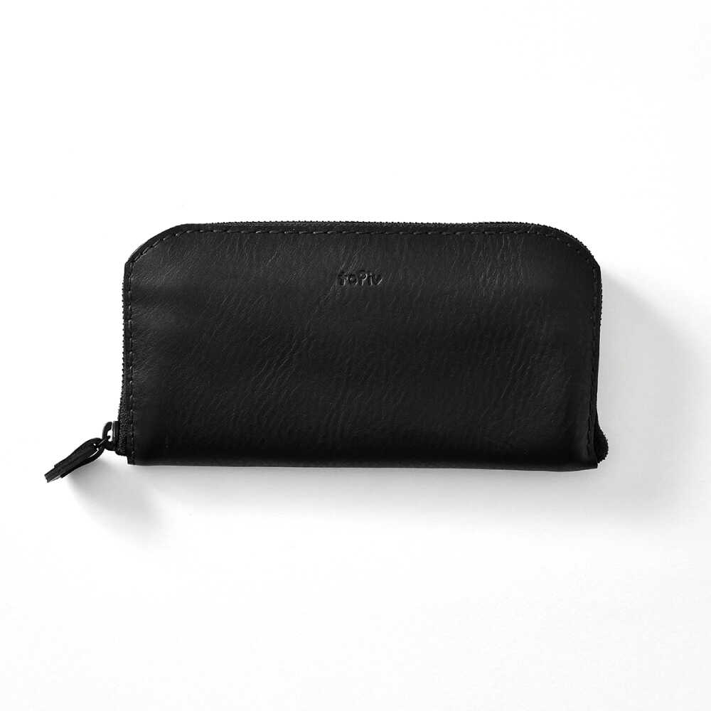 - 【ふるさと納税】ロングウォレット 【ブラック】 本革 イタリアンレザー / 長財布 ファスナー付き カード8枚収納 お札入れ3 小銭入れあり 小浜市 / topiv[BFAI007]