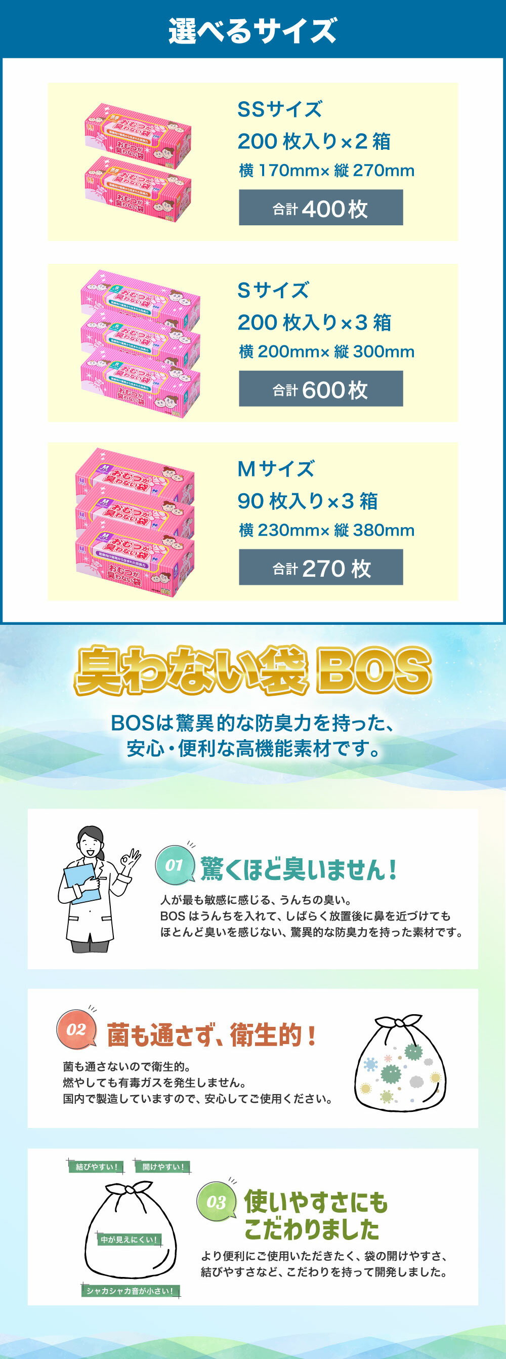 【ふるさと納税】臭わない袋BOS おむつが臭わない袋 ベビー用 SS~M 10000円 ~ 20000円 1万円 ~ 2万円 | ゴミ袋 防臭 生ゴミ ビニール袋 赤ちゃん おむつ 防臭袋 セット 小樽市 北海道 送料無料