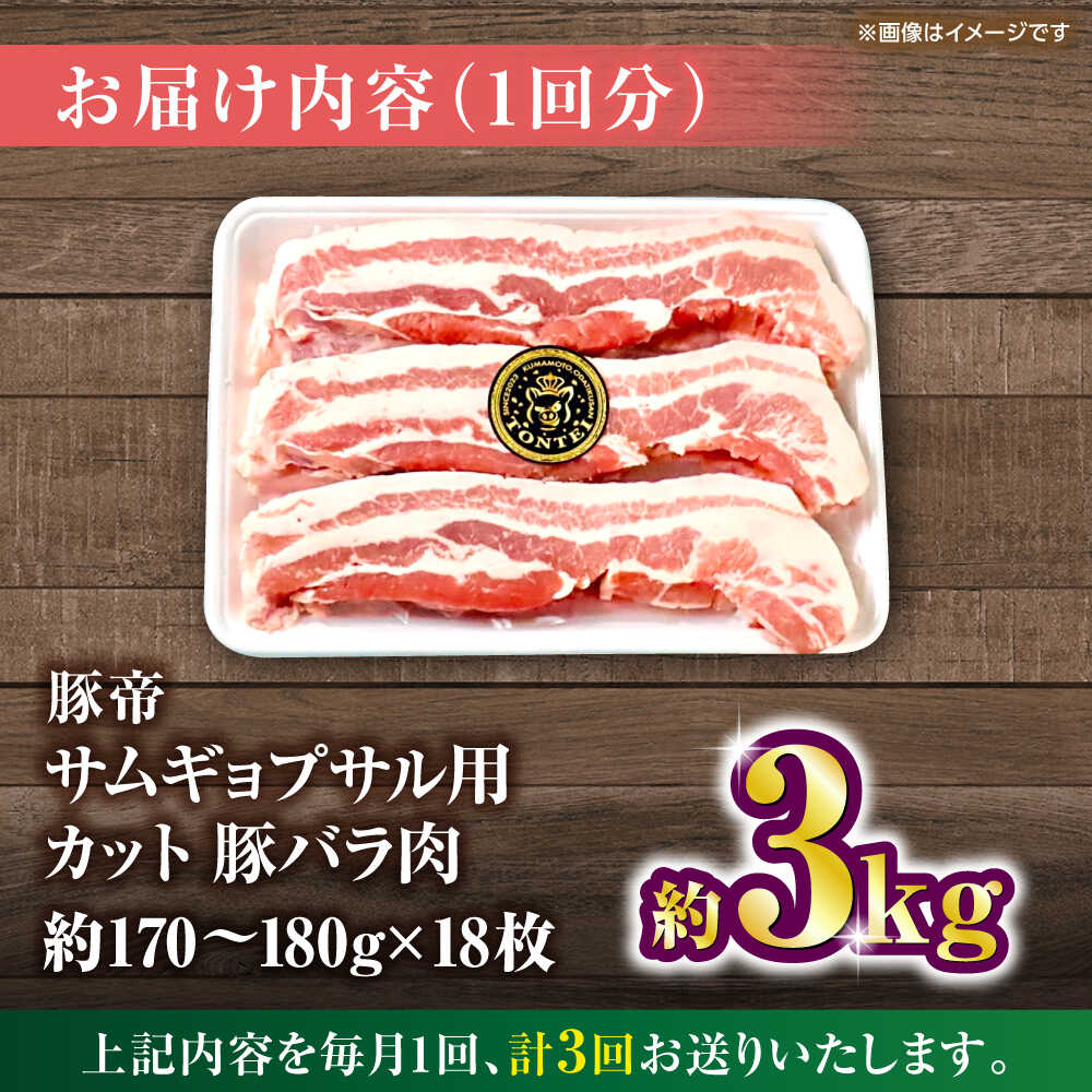 【ふるさと納税】【全3回定期便】豚帝 バラ肉 サムギョプサル カット 約3kg(1枚約170〜180g×18枚)【KRAZY MEAT(小田畜産)】[ZCP160]