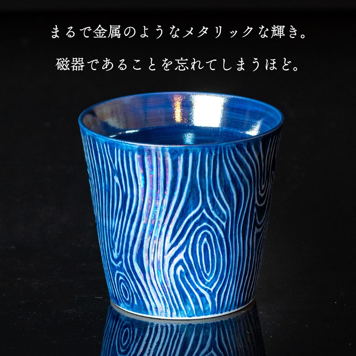 - 【ふるさと納税】【晩酌を華やかに】メタリックな有田焼 ロックカップ(木目) 青 & 白 計2個セット 女性にも人気 【喜鶴製陶】軽量 ギフト ペアセット 食器 有田焼 ロックグラス ビアカップ タンブラー A20-642