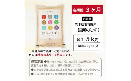 五ツ星お米マイスター 厳選 雫石町産 新米 銀河のしずく 精米 5kg 1袋 3ヶ月 定期便 【諏訪商店】 米 こめ コメ 白米 ご飯 ごはん ライス グルメ 食料 五つ星 5つ星 5ツ星 お米 マイスター 5キロ 3カ月 3か月 3カ月 総量 15kg 15キロ 国産 岩手県産 産地直送 プレゼント お取り寄せ 仕送り 人気 おすすめ
