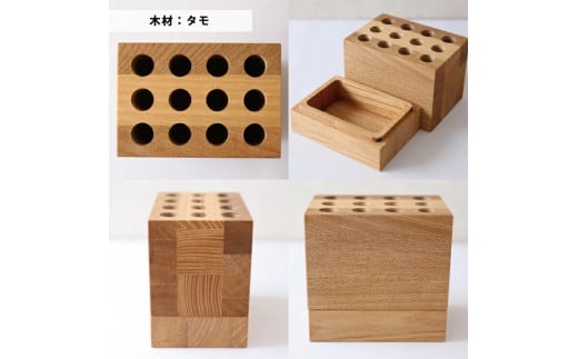 - 《3種の木材から選べる》収納付き木製ペン立て 12穴タイプ (タモ) SA1318