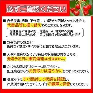令和8年産 さくらんぼ「 佐藤錦 」500g (250g×2パック) 秀品 Lサイズ以上 2026年産 山形県産 【2026年6月上旬頃~下旬頃発送予定】※配送不可 沖縄・離島 012-A-AF020