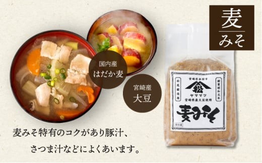 - V-D1【定期便・全3回】宮崎県産のこだわりの大豆使用!松尾のみそセット(麦味噌1kg×3個・あわせみそ1kg×3個・計6kg)×3回【松尾醸造場】