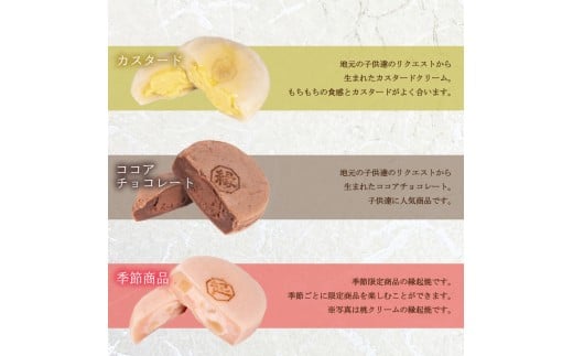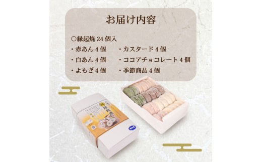 - 縁起焼 24個 ( 冷凍 和菓子 スイーツ デザート お菓子 おやつ 赤あん あんこ 小豆 あずき 白あん よもぎ ココア チョコレート カスタード 名産品 餅饅頭 ご縁 お米 自宅用 手土産 ギフト プレゼント 家庭用 贈答 お取り寄せ 冷凍スイーツ お中元 お歳暮 合格祈願 感謝 ) 山口 下関