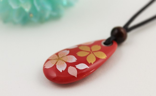 有田焼桜吹雪ペンダント(大・皮紐)有田焼アクセサリー二宮閑山 A24-156