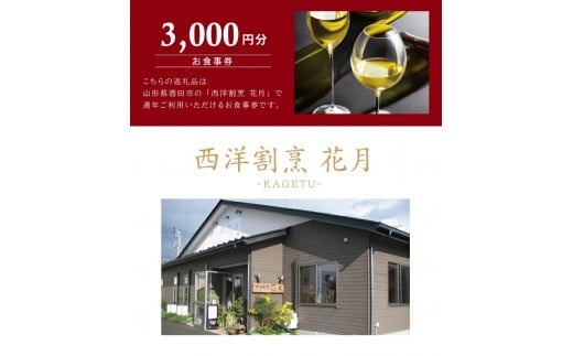 - 西洋割烹 花月 お食事券 3,000円分 SA1580