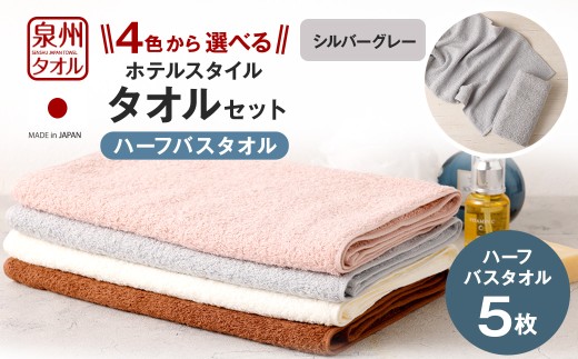 <選べるカラー> 泉州タオル ホテルスタイル タオルセット | ハーフバスタオル 5枚 (シルバーグレー) タオル バスタオル ハーフ スリム ホテル仕様 5枚セット セット 選べる カラー 色 綿100% 蛍光剤不使用 敏感肌 日本製 日用品