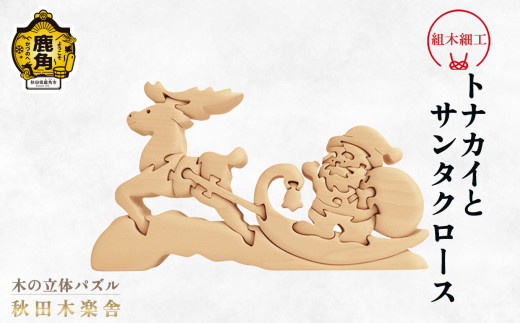 - 秋田木楽舎 組木細工「サンタクロースとトナカイ」【木楽舎】 木 木育 パズル おもちゃ 子供 玩具 組み立て 立体 インテリア お祝い 節句 プレゼント 贈り物 ギフト 贈答 秋田県 秋田 あきた 木楽舎 鹿角市 鹿角 かづの