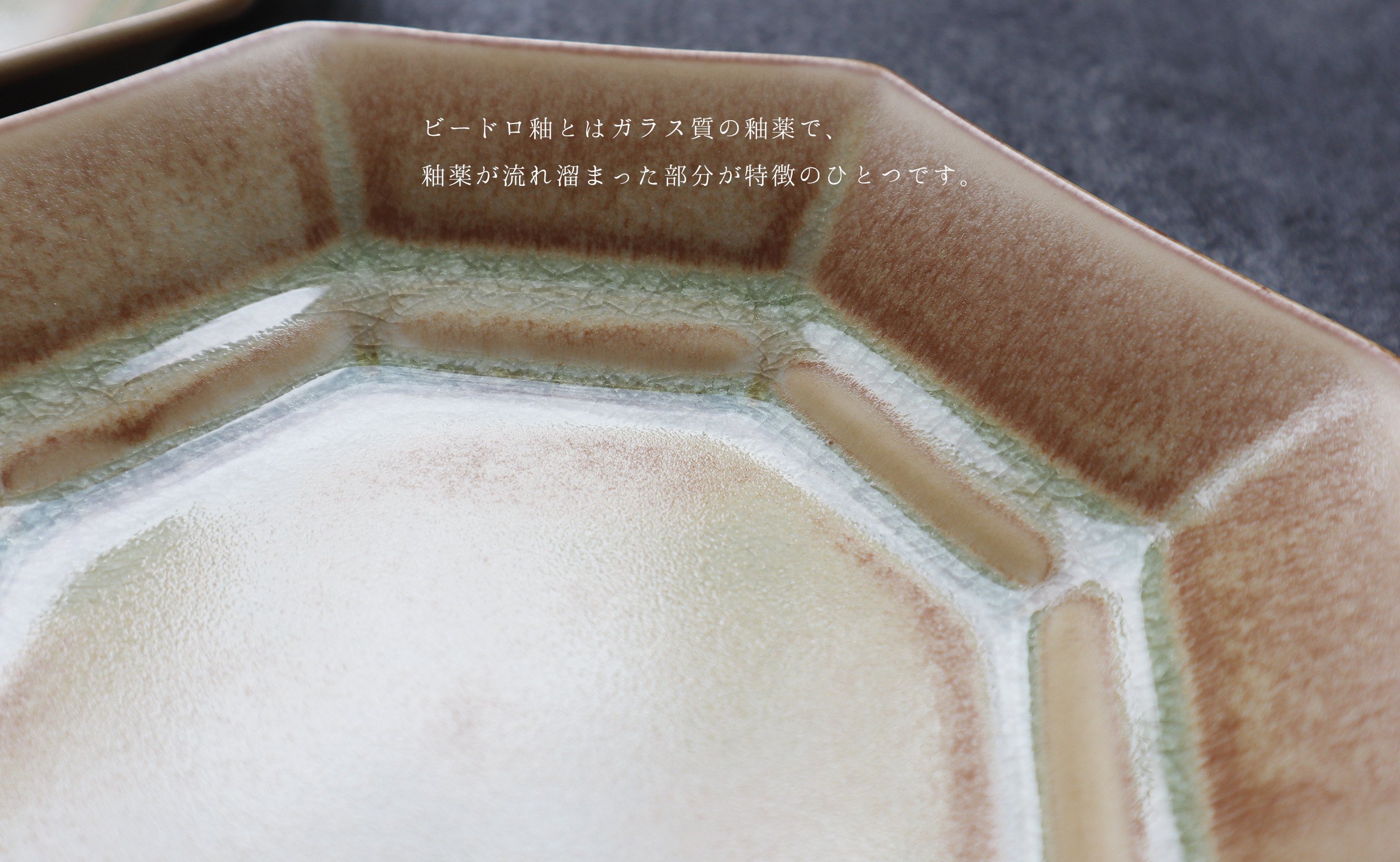 - 【まるふくオリジナル】有田焼 ビードロ釉八角皿2枚セット まるふく おしゃれ ペア プレート 取皿 A24-73