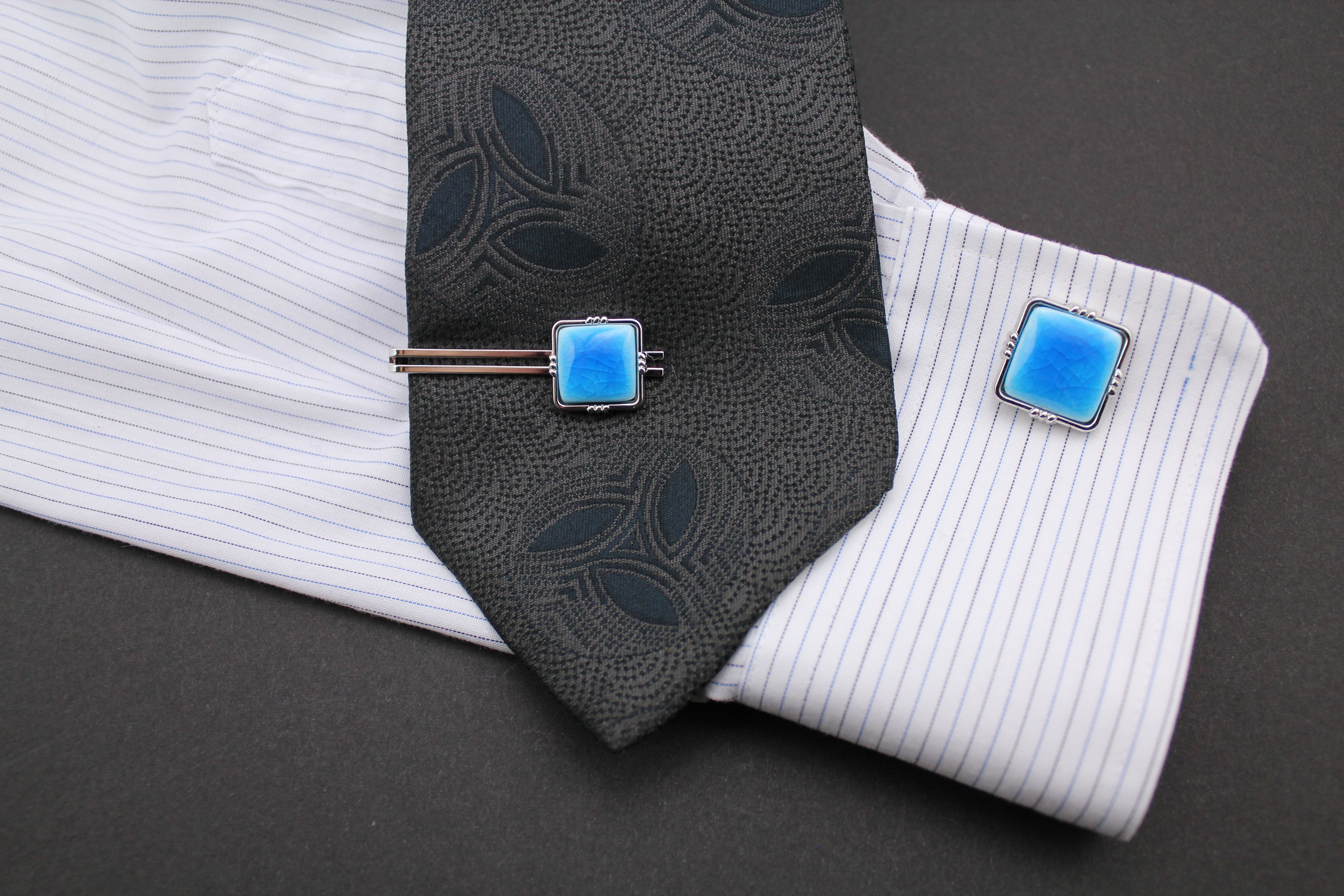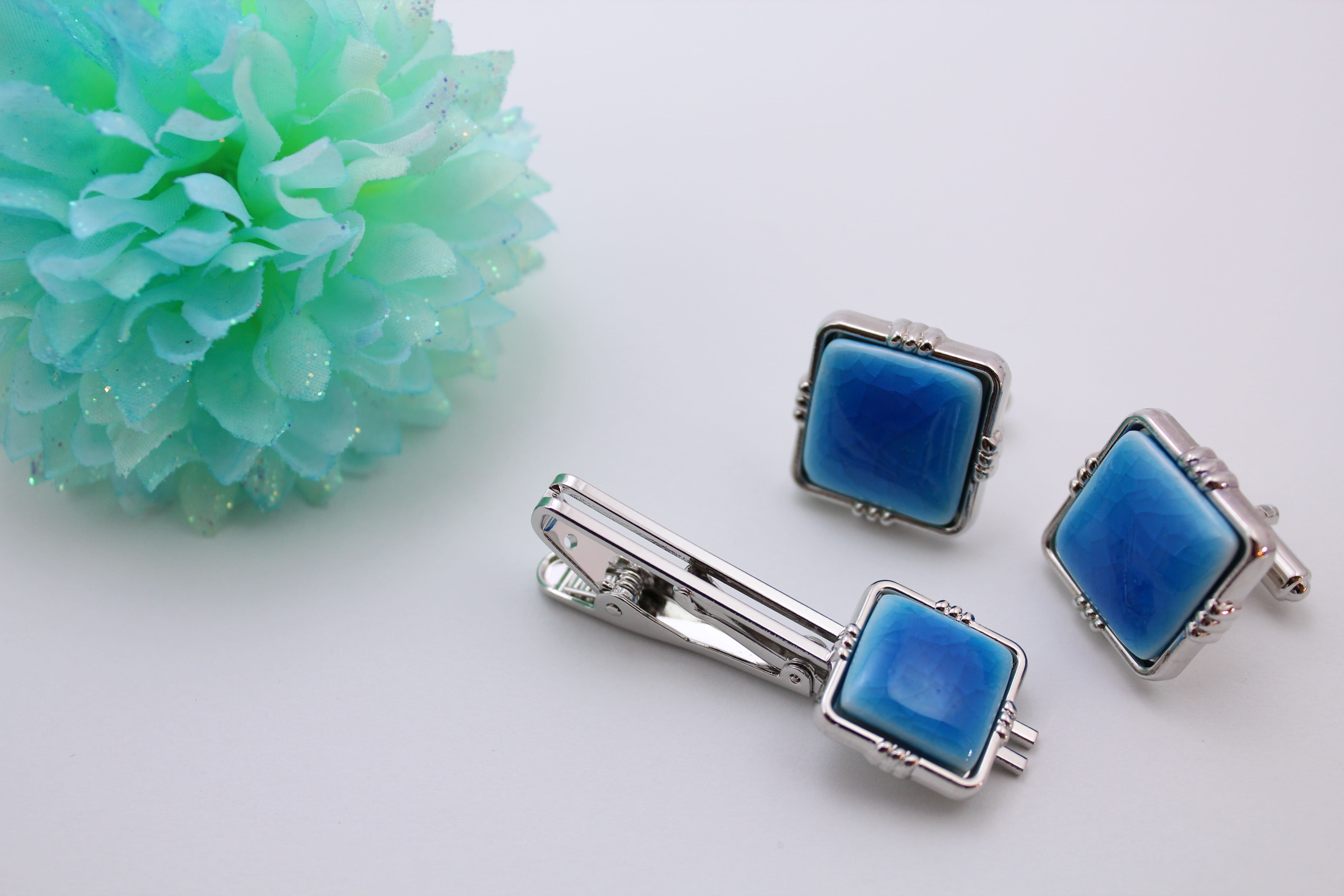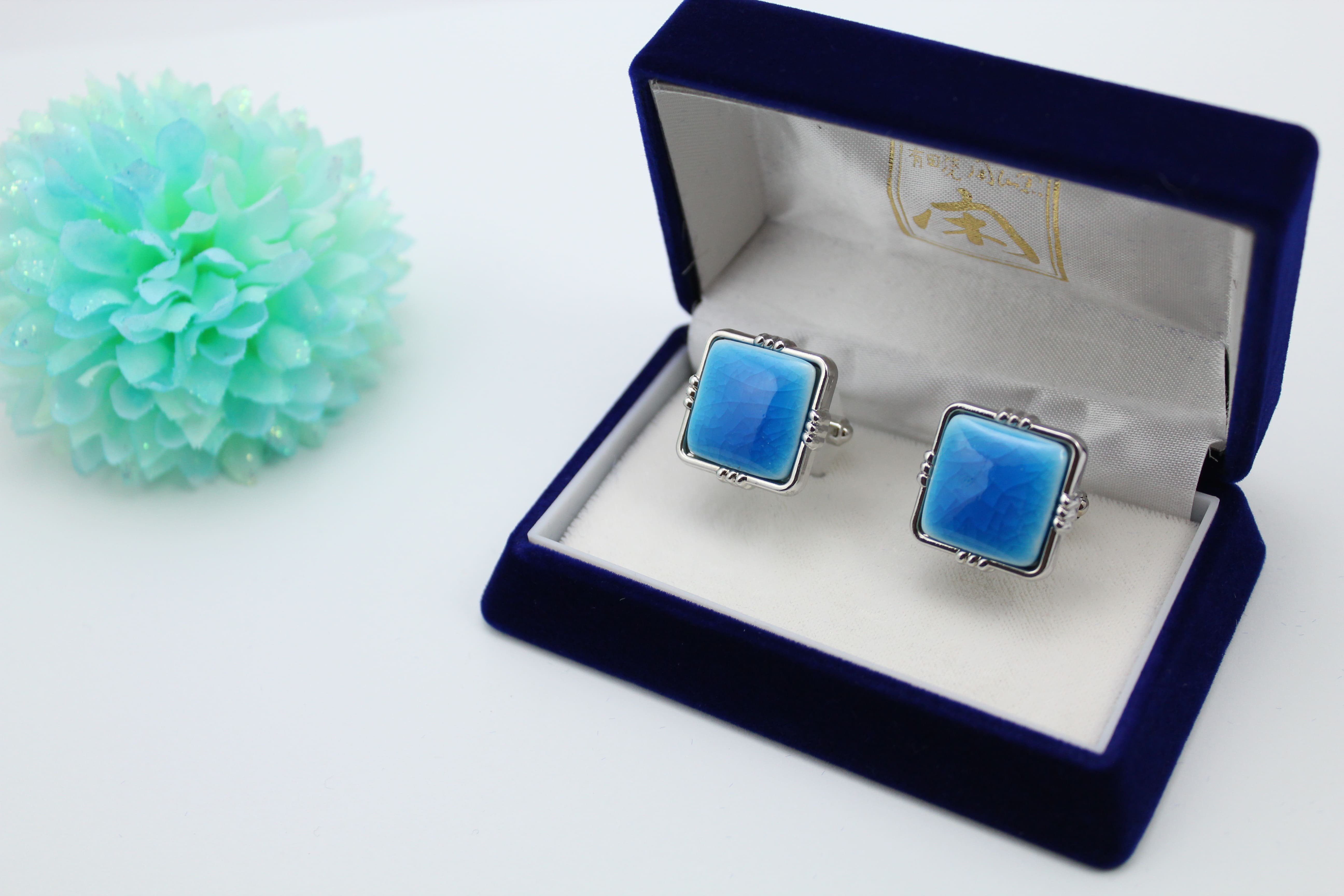 - カフスボタン スカイブルー 有田焼アクセサリー二宮閑山 A24-152