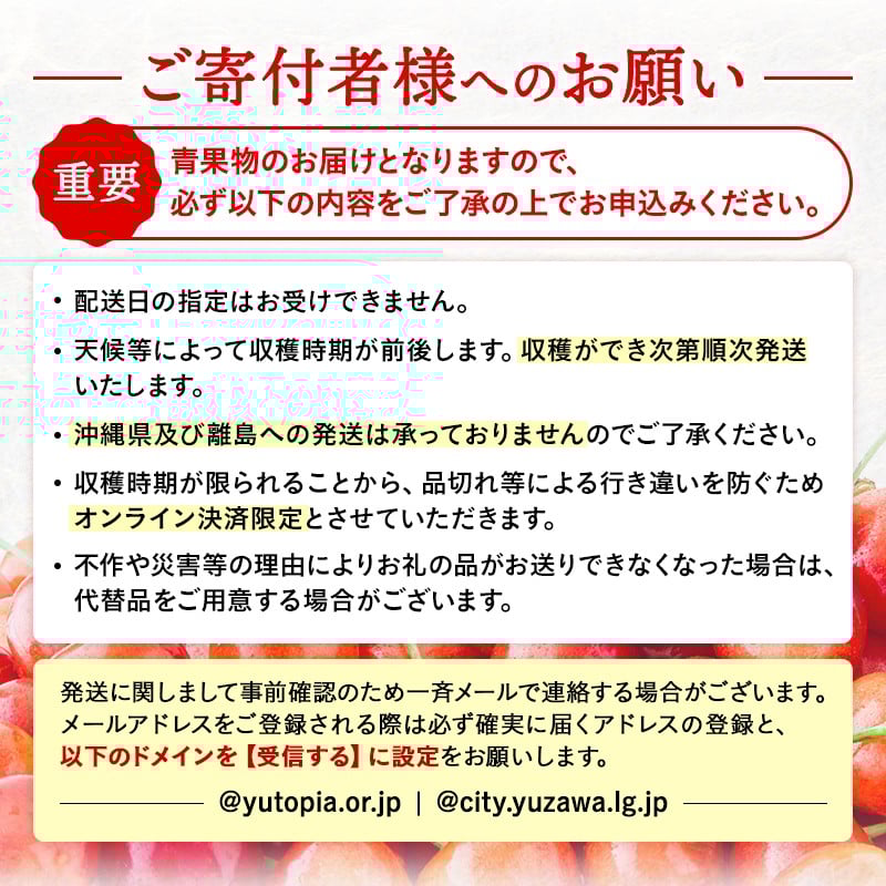 - 令和8年産 先行予約 数量限定!「常温」佐藤錦 500g 秀L~2Lサイズ さくらんぼ 果物 フルーツ 秋田県 湯沢市 三関【田村果樹園】[H10801]