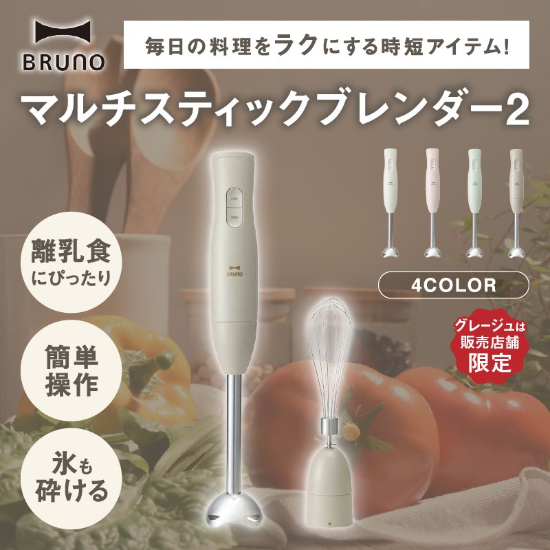 - BRUNO マルチスティックブレンダー2 【※配送時期をご確認ください※】 ミキサー ハンドブレンダー フードプロセッサー ブルーノ チョッパー ホイッパー みじん切り 料理 調理 離乳食 出産祝い 調理器具 キッチン家電 時短家電 ギフト プレゼント 贈り物 お友達 家族 東京 新宿 0152-004-S07