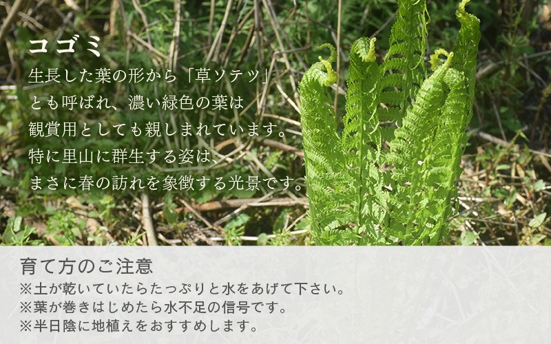 - 【先行予約】コゴミ苗木 (鉢物) 鉢底から40cm~50cm 【2025年10月上旬以降順次発送予定】【こごみ お花 花 はな フラワー 苗 植物 父の日 母の日 家庭菜園 花壇 プランター ガーデニング観葉植物 園芸 鉢物 】 [m47-a017]