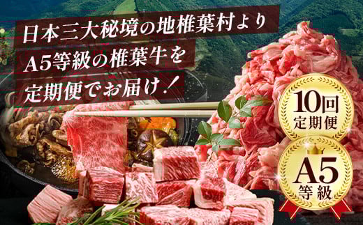 - 【 定期便 全10回 】 10ヶ月連続でお届け! 牛肉 オール椎葉牛大満足セット 総重量 5,180g 【 日本三大秘境 椎葉村 育ちの黒毛和牛 】[ 牛肉 ステーキ 精肉 ホルモン モモ肉 ヒレ肉 定期便 定期配送 肉 スライス肉 サーロイン A5等級指定 黒毛和牛 ブランド牛 A5ランク おすすめ 送料無料 ] TK-105