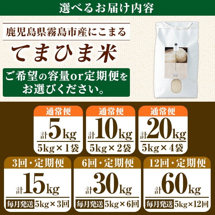- K-198 <容量・定期便が選べる><令和7年産新米 先行予約受付中!2025年12月以降順次発送予定>てまひま米(品種:にこまる)(計5kg・計10kg・計20kg・3回定期便・6回定期便・12回定期便)【末蜜農園】霧島市 お米 精米 白米 米 こめ コメ ご飯 ごはん 定期便 栽培期間中農薬不使用