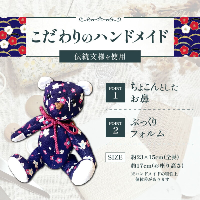 【ふるさと納税】テディベア (「創作姉妹」ジャパニーズテディベアM) ハンドメイド 日本製ちりめん ギフト アンティーク インテリア