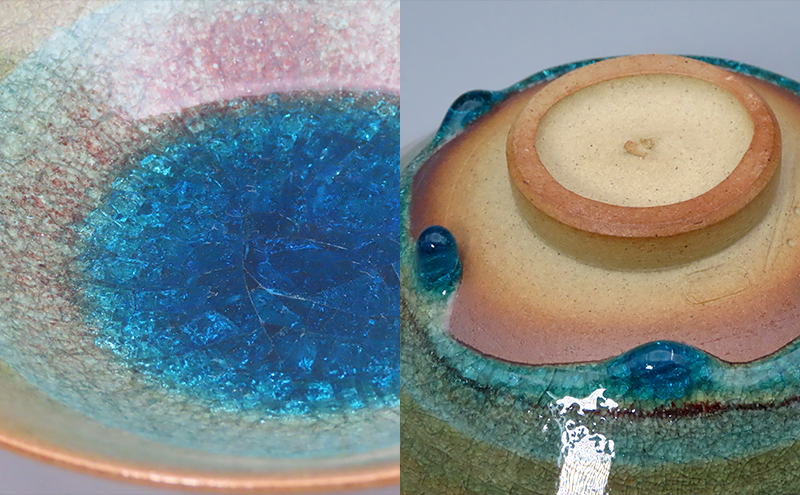 【高島屋選定品】虫明焼窯元 灰釉彩貫入茶碗(青・黒井博史作)