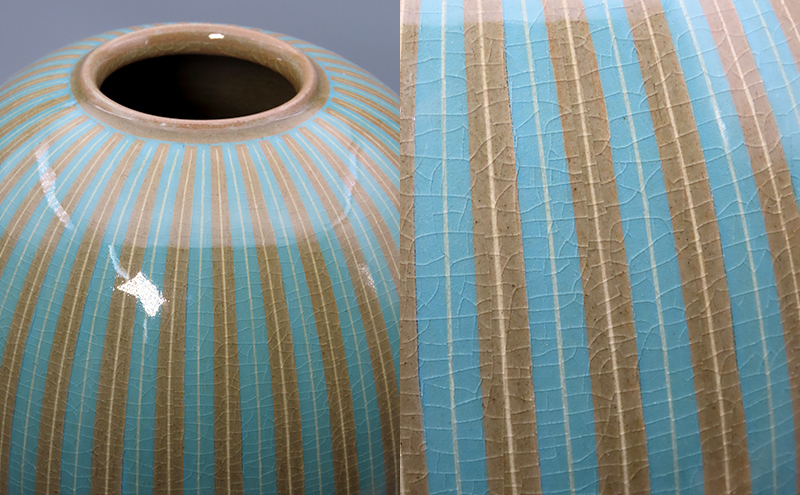 - 【高島屋選定品】虫明焼窯元 灰釉象嵌線文壺(黒井千左作)
