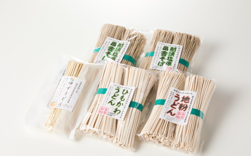 - ns137-001-5 那須塩原産そばと小麦を使った田舎そば&うどんの乾麺 計5袋セット