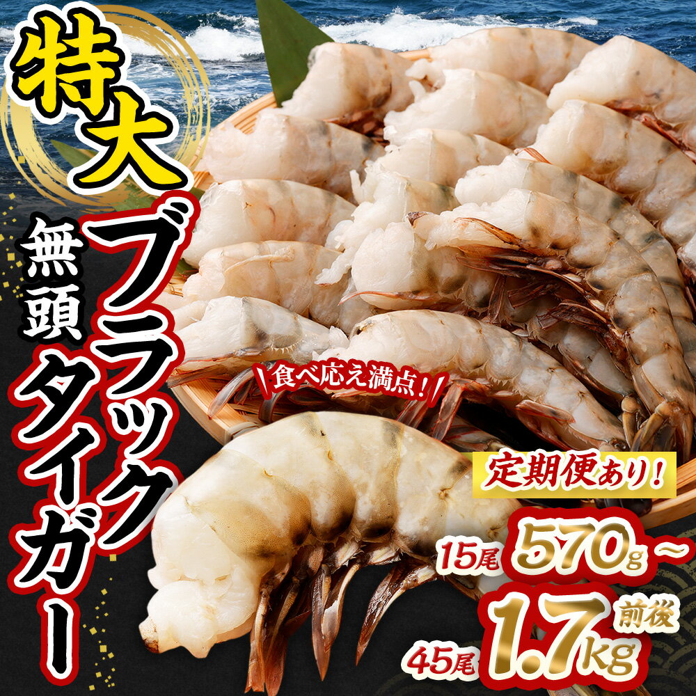 【ふるさと納税】【入金確認後7営業日以内に発送】 <単品・定期便が選べる> 特大 ブラックタイガー 無頭 えび <単品> 約570g (15尾) or 約1.1kg(30尾) or 約1.7kg(45尾) または <定期便> 3回・6回・12回 12000円 ~ 140000円 1万2000円 ~ 14万円|冷凍 大阪府 阪南市
