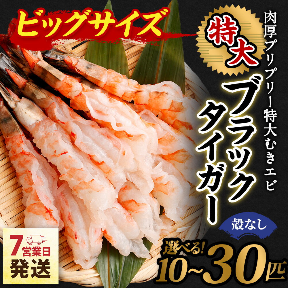 【ふるさと納税】【選べる容量】特大ブラックタイガー(殻なし)ビッグサイズ 10匹 / 20匹 / 30匹【入金確認後7営業日程度で発送 | ブラックタイガー 冷凍エビ 特大エビ 海老 殻剥き エビフライ 天ぷら エビチリ お取り寄せ 訳あり ギフト 大阪府 阪南市 送料無料