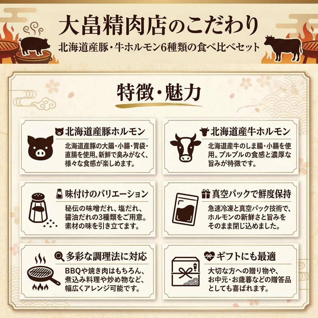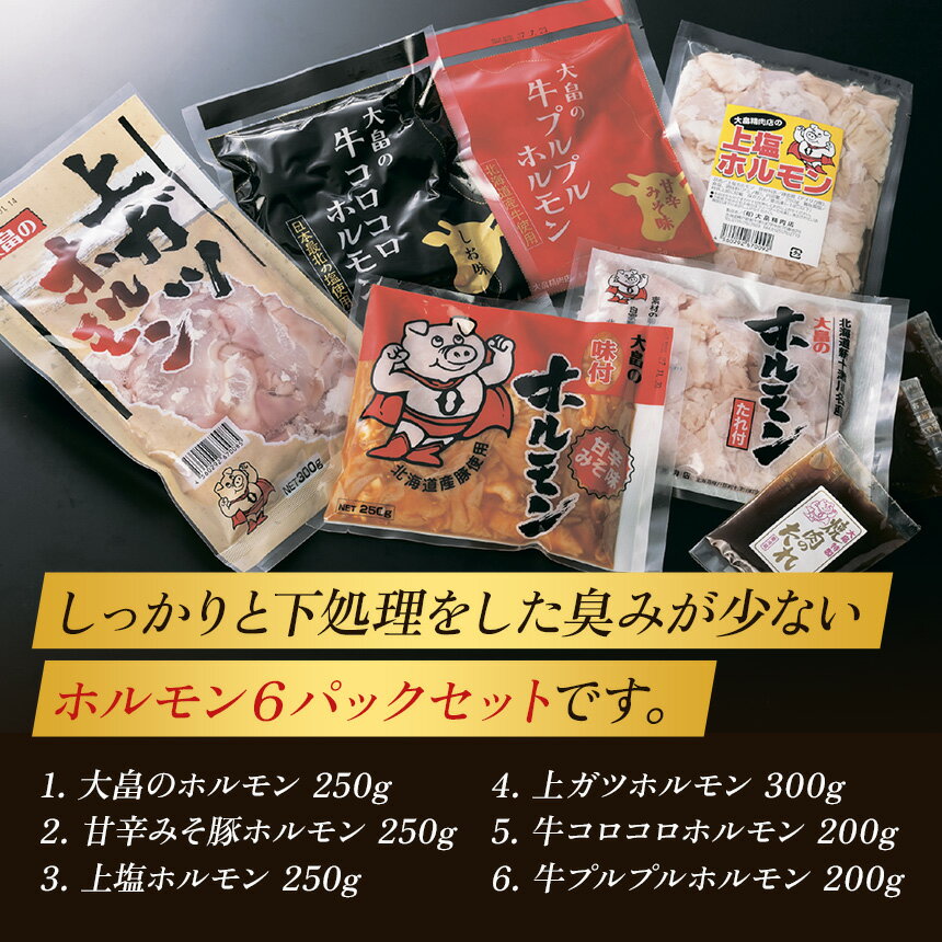 【ふるさと納税】大畠精肉店のホルモン食べ比べセット 計6種 オンライン 申請 ふるさと納税 北海道 新十津川 肉 焼肉 焼き肉 牛 ガツ BBQ バーベキュー 味付き 味付 味噌 みそ 塩 冷凍 取り寄せ お取り寄せ 新十津川町【1300702】