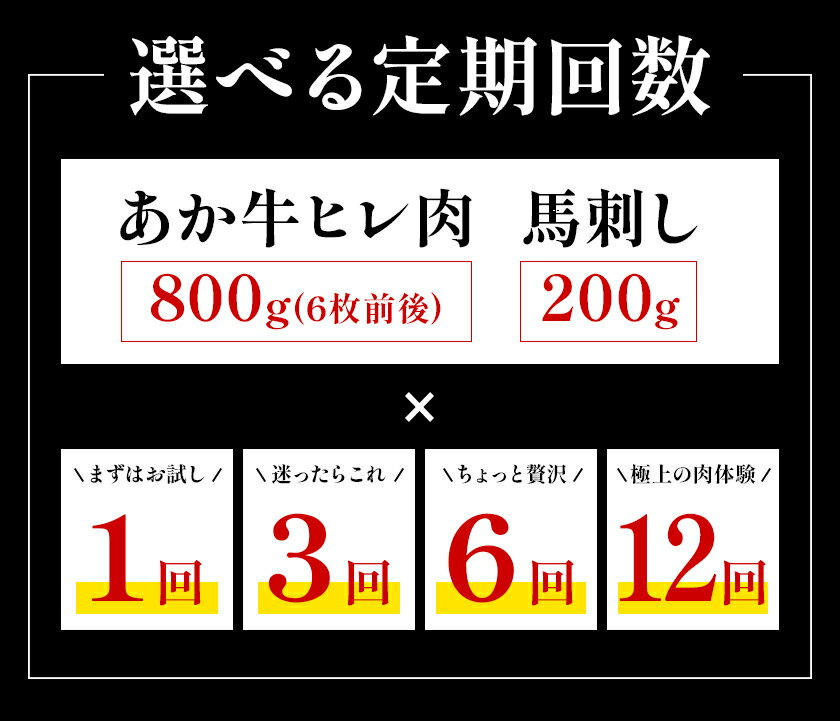 【ふるさと納税】あか牛 ヒレ肉 800g(6枚前後) 馬刺し 3種類 合計1kg 食べ比べ セット 選べる定期便 1回 3回 6回 12回 合同会社たべたせいか《出荷時期をお選びください》詰め合わせ 赤牛 国産和牛 和牛 ステーキ 馬肉 赤身 霜降り たてがみ 熊本県産 九州産 送料無料
