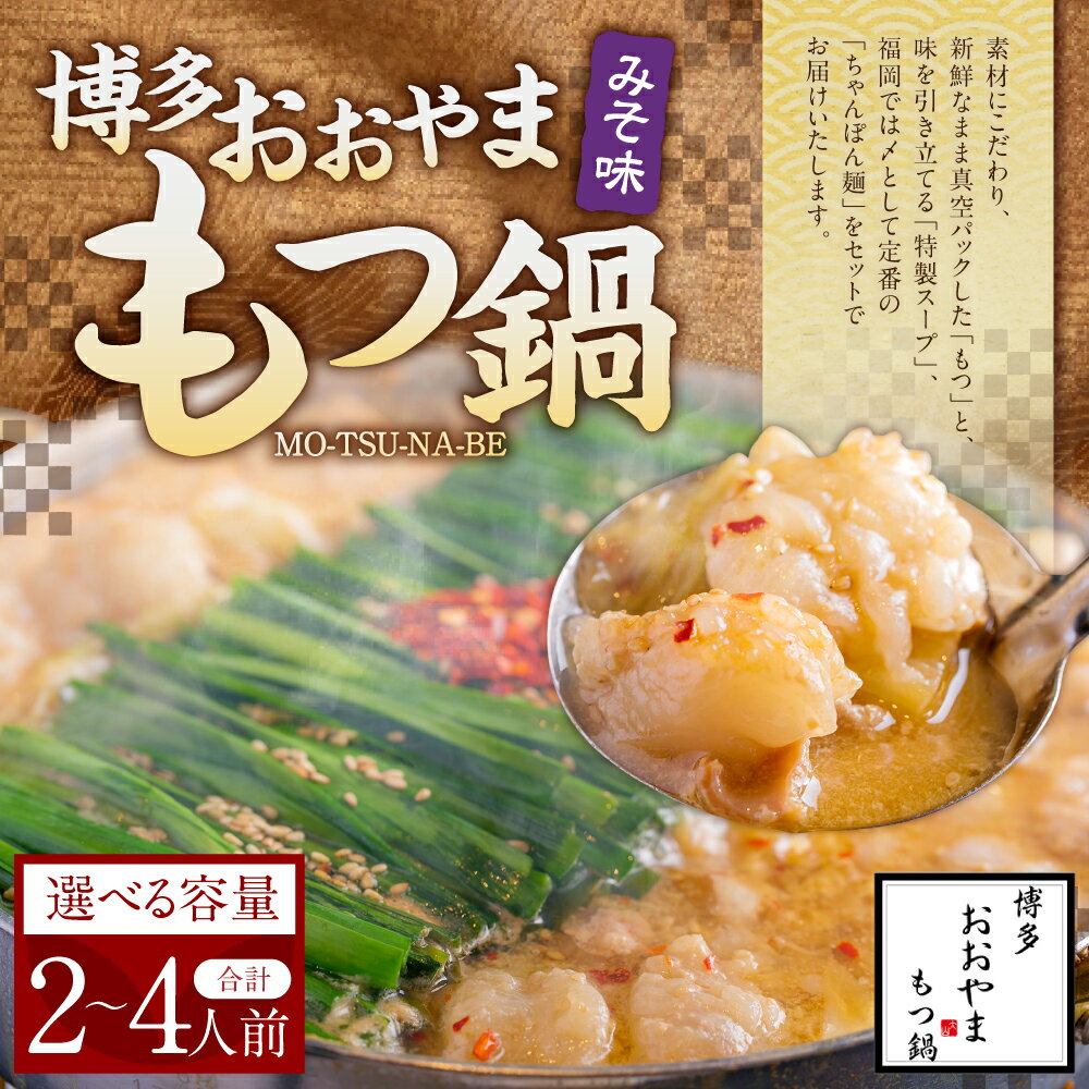 - 【ふるさと納税】【選べる容量】「おおやま」博多もつ鍋 みそ味 2人前 3人前 4人前 味噌もつ鍋 もつ鍋 モツ鍋 鍋 鍋セット 味噌 味噌スープ スープ付き ちゃんぽん ちゃんぽん麺 麺 お取り寄せ グルメ 冷凍 博多 九州 福岡県 糸田町 送料無料