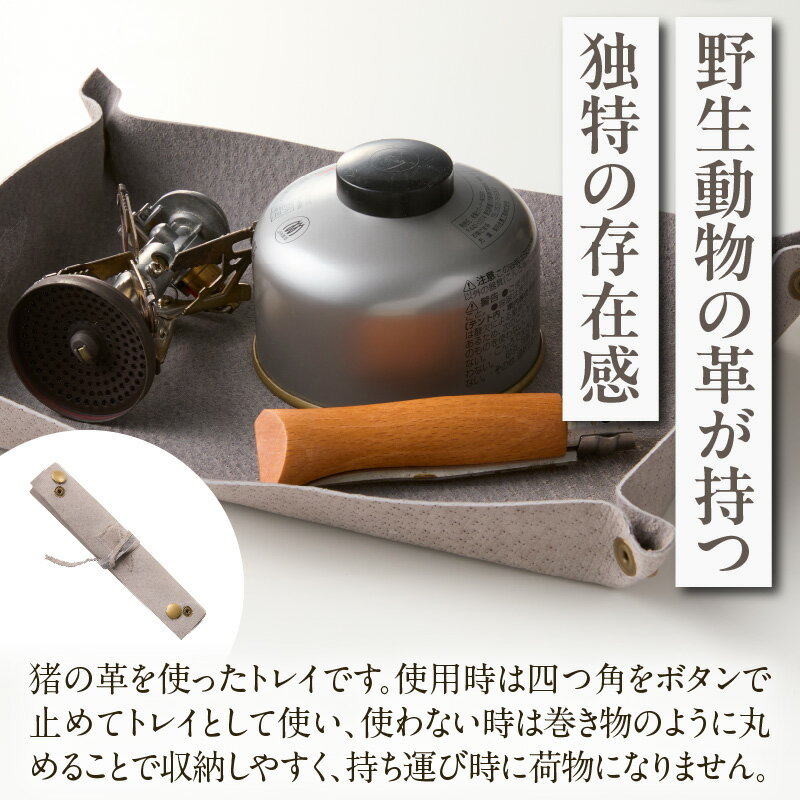【ふるさと納税】2127-1 【猪革の巻きものトレイ】アウトドア・革好きな人へ ジビエレザー グレー/ ”RUFFIAN” 革製品 革小物 レザー 革 猪革 天然皮革 レザー小物 レザートレイ 収納 持ち運び 小物入れ 小物 トレイ キャンプ 香川県 三木町