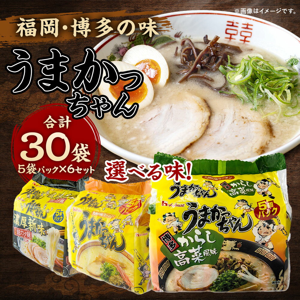 【ふるさと納税】<選べる種類>福岡・博多の味 「うまかっちゃん」 濃厚新味・からし高菜風味・とんこつ 計30袋(5袋パック×6セット) ラーメン らーめん 拉麵 麺類 袋麺 豚骨 惣菜 中華 博多 グルメ 福岡県産 国産 九州 福岡県 大任町 送料無料