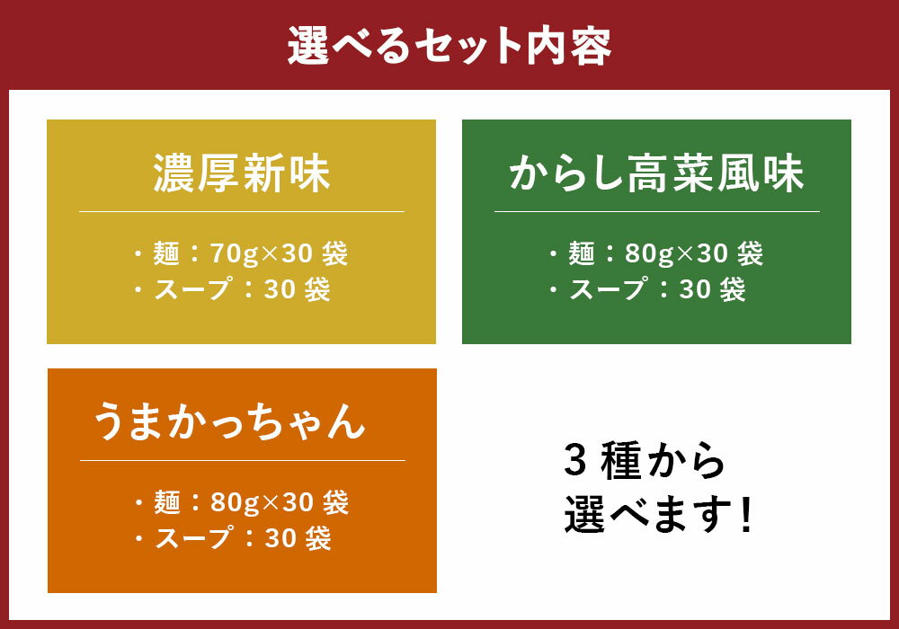 - 【ふるさと納税】<選べる種類>福岡・博多の味 「うまかっちゃん」 濃厚新味・からし高菜風味・とんこつ 計30袋(5袋パック×6セット) ラーメン らーめん 拉麵 麺類 袋麺 豚骨 惣菜 中華 博多 グルメ 福岡県産 国産 九州 福岡県 大任町 送料無料