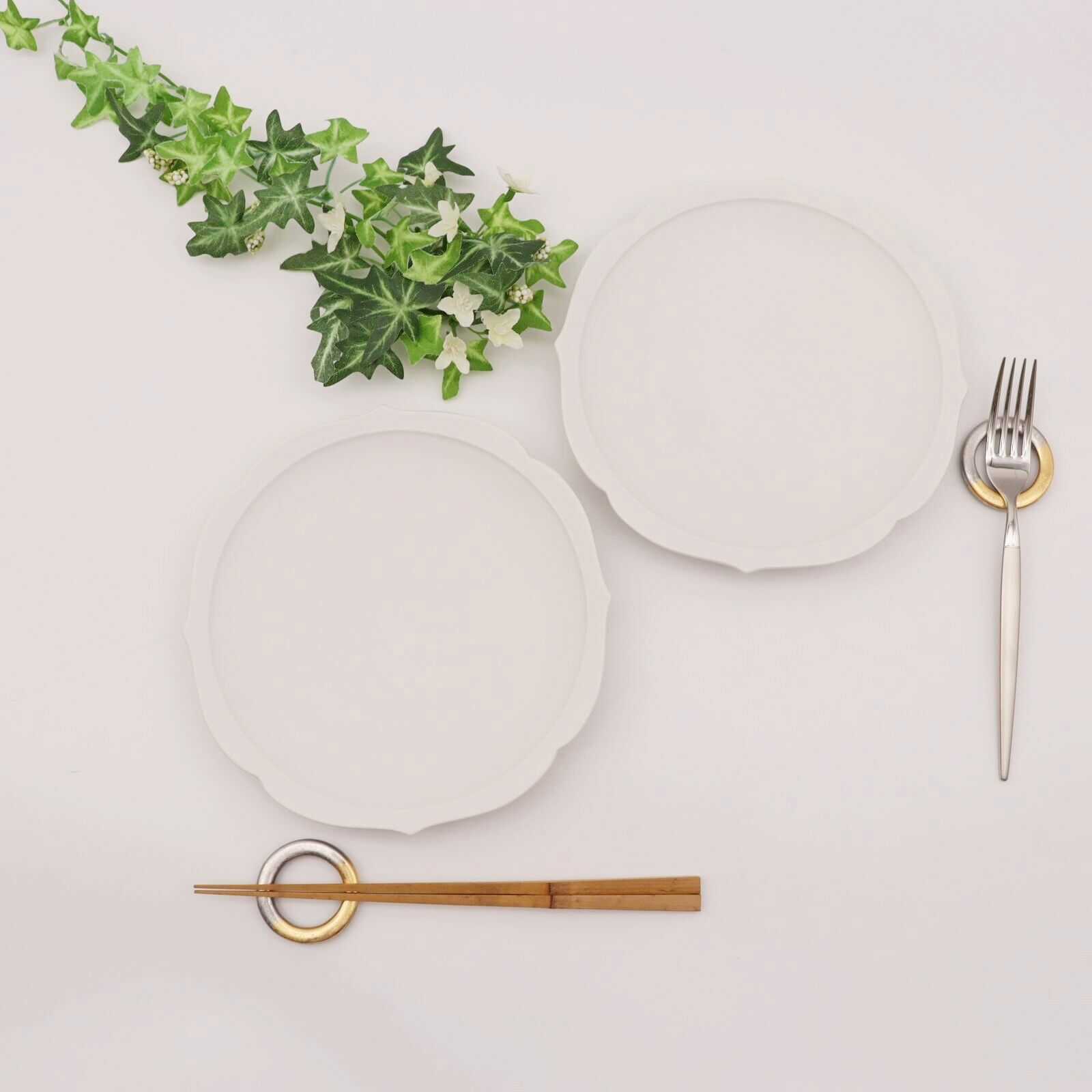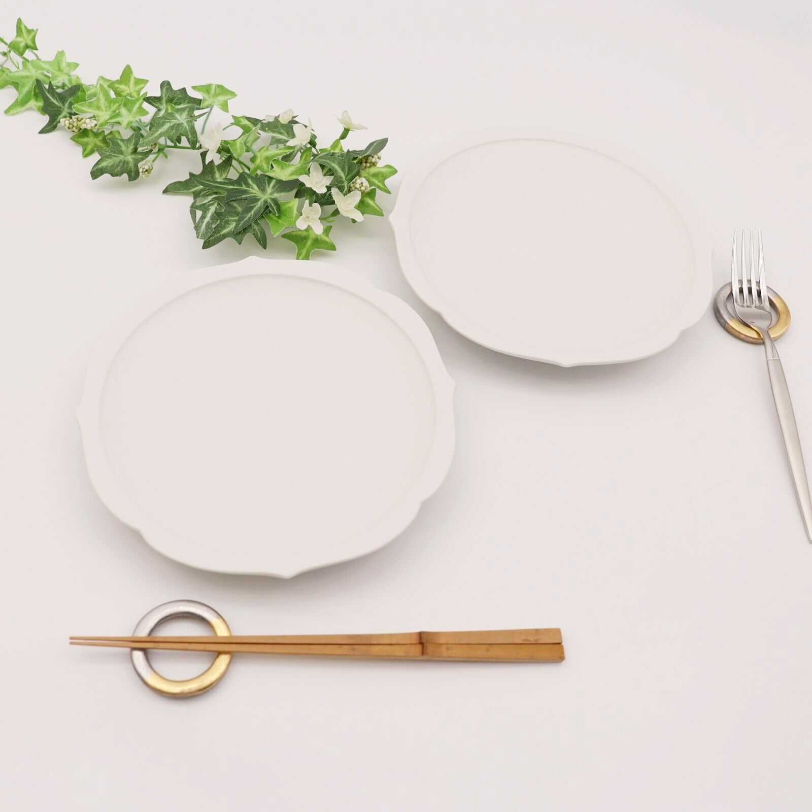 - 【ふるさと納税】【有田焼】白マット輪花桔梗渕6.5寸皿+丸リング箸置き(各2点セット) / 有田焼 皿 箸置き / 佐賀県 / 株式会社深海三龍堂 [41APAD026]