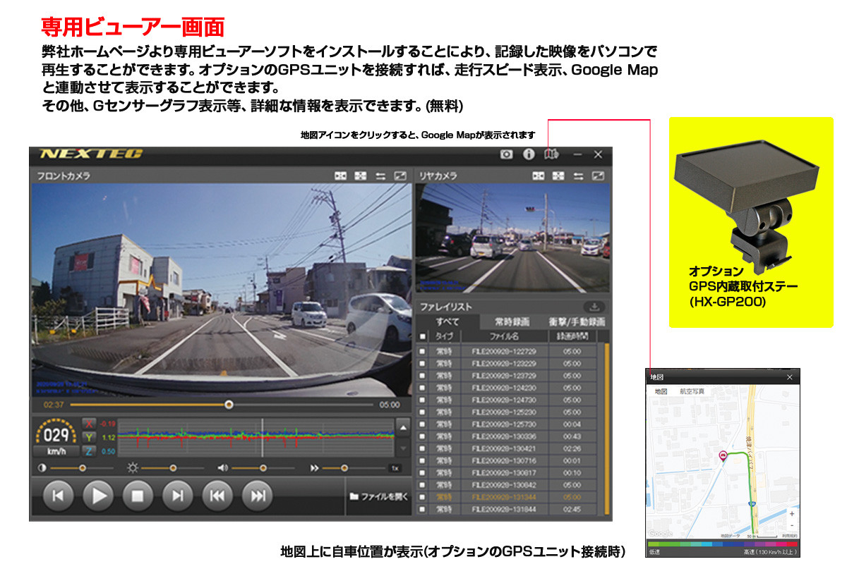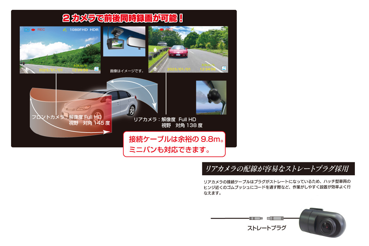 200万画素 2カメラドライブレコーダー FC-R212WW