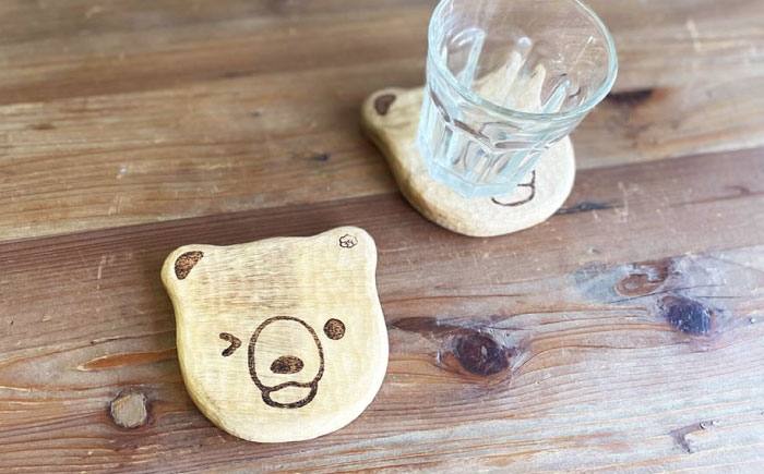 しろくまのコースター 1点 手彫り 木製 糸島市 / しろくも工房【いとしまごころ】 [AEO012]