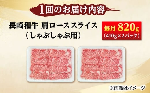 【2回定期便】長崎和牛 肩ロース スライス しゃぶしゃぶ用 820g(410g×2) 【佐世保エスディー食品株式会社】[DBW017] [DBW017]