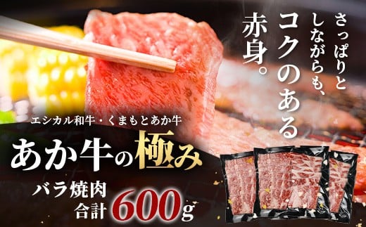 - 【エシカル和牛】くまもと あか牛【あか牛の極み】バラ焼肉 200g×3 (計 600g) バラ 熊本 赤牛 ジューシー 牛肉 小分け 焼き肉 焼肉 やき肉 BBQ アウトドア 和牛 国産 SDGs 033-0514