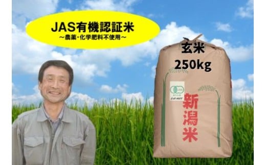 【令和7年産新米】JAS有機認証米 コシヒカリ 玄米 250kg 精米も可 1G16001