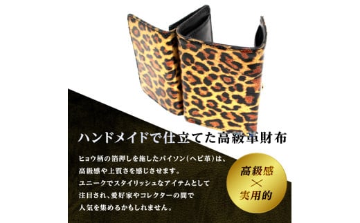 - パームウォレット【ハープシール(アザラシ革)】箔押し (全2柄) (柄:ヒョウ柄)
