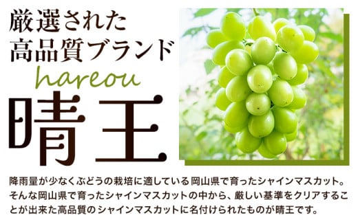ぶどう [2026年先行予約] シャインマスカット 晴王 1房約650g《2026年9月中旬-10月中旬頃出荷》晴レ乃青果 (岡山中央卸売市場店(富士紙工 有限会社)) マスカット 送料無料 岡山県 浅口市 フルーツ 果物 贈り物 ギフト 国産 【配送不可地域あり】