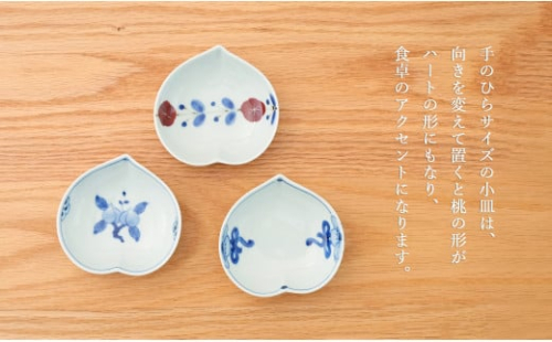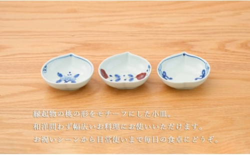 有田焼 桃型小付絵変わり 3点セット【皓洋窯】食器 器 うつわ 小鉢 手描き 縁起物 お祝い 染付 赤絵 A23-2