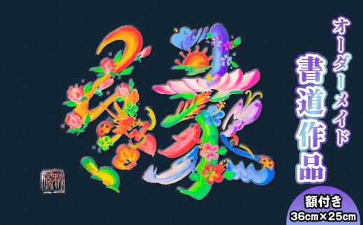 - No.107 書道作品 半紙サイズ(額付き) / 書道家 秋鳳 オーダーメイド 誕生祝 出産祝 結婚祝 新築祝 開業祝 開店祝 還暦祝 父の日 母の日 商売繁盛 神奈川県